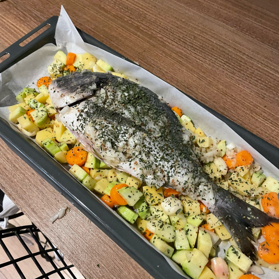 Vinegret sosunu bol tutup hem balıkta hem de sebzelerde kullandım. Ama sebzeleri farklı bir sosla ya da baharatlarla çeşnilendirmek isterseniz sebzeleri ayrıca soslayabilirsiniz.