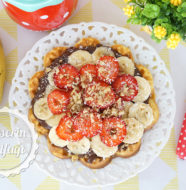 Çilekler bollaşmaya ve ucuzlamaya başlamışken bu tarifi bir deneyin derim. Özellikle aynen böyle, muz-çilek kombinasyonuyla yapın bence. Muz-çilek-çikolata üçlüsü birbirine o kadar yakışıyor ki waffleınızı yerken vücudunuzun mutluluk hormonu salgıladığını fiziksel olarak hissedebiliyorsunuz adeta.