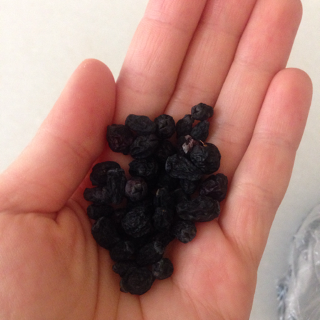 Yaban mersinini hiç tanımayanlar için biraz tarif edeyim. Üzüm gibi bir meyve. Çok belirgin bir tadı yok taze halde yerken. Dışı lacivert renkli, içi beyaz üzüm gibi şeffaf. Ayıklanması gereken bir çekirdeği yok, direkt olarak yenebiliyor. Mutfak kullanımı için en güzel özelliği piştiğinde kabuğundaki rengi salıp kurabiyelerde gördüğünüz gibi vişne, böğürtlen ya da frambuaz gibi hoş bir görüntü bırakıyor olması. Bu görüntüden dolayı sanki ekşili bir tat verecekmiş izlenimi yaratıyor ama öyle demin saydığım meyveler gibi yoğun bir ekşi tat vermiyor kullanıldığı tariflere. Bu nedenle limonla birlikte kullanılması daha hoş bir sonuç veriyor.