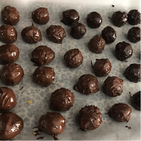 - Topları çikolataya bulayıp yağlı kağıt serilmiş bir tepsiye dizin,