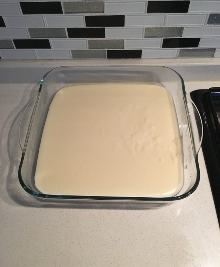 - 21*36 cm'lik bir fırın kabının içini ıslatıp muhallebiyi içine dökün,