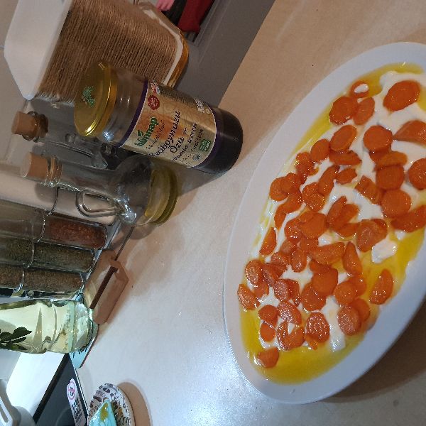 Üzerine evde bulunan sebzelerden 1-2 tane doğrayıp zeytinyağında sotelerseniz sofranıza renk katmış olursunuz. Ben bu sefer havucu tercih ettim. Havuçlar kavrulurken yağa renklerini verdikleri için çok hoş bir görüntü oluştu. Sarımsaklı yoğurt ve kızarmış havucun birbirine ne kadar yakıştığını bilmeyen de yoktur. O zaman böylesine bir lezzetten kendinizi mahrum etmeyin ve 10 dakikanızı ayırarak deneyin bu tarifi en kısa sürede.