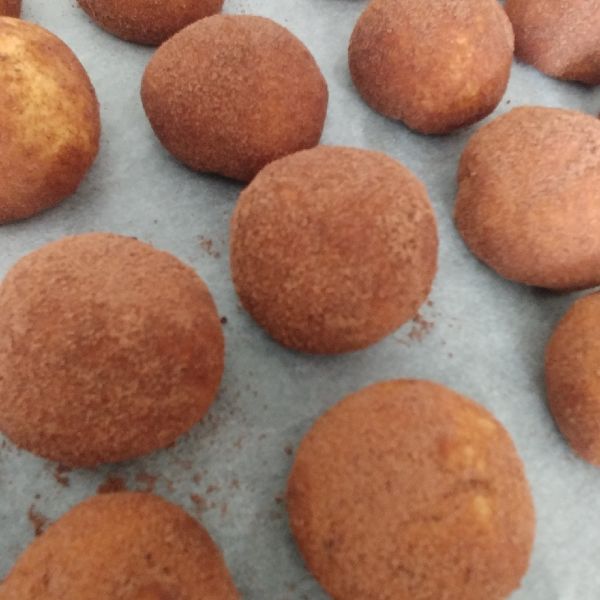 - Dışını kaplamak için kullanacağınız pudra şekeri ve kakaoyu eleyerek geniş bir tabakta karıştırın,