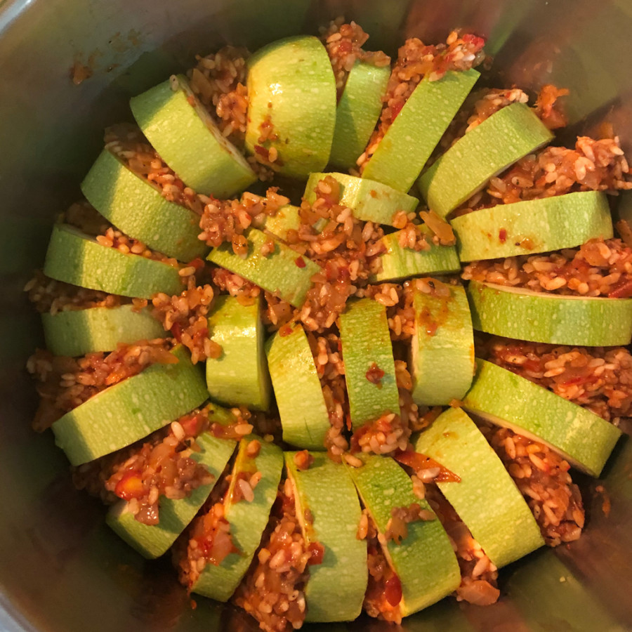 - Kısık ateşte kabaklar ve pirinçler yumuşayana kadar pişirin.